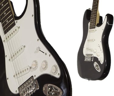 Con una forma icónica de Stratocaster, esta guitarra tiene un aspecto clásico y elegante que se adapta perfectamente a cualquier estilo de música.