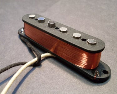 Están formadas por un imán permanente rodeado por un bobinado de alambre de cobre Cuando un cuerpo metálico ferromagnetico(en este caso las cuerdas) se mueve dentro del campo magnético de un imán permanente, se provoca una corriente inducida en el bobinado, proporcional a la amplitud del movimiento y de frecuencia igual a la de la oscilación del objeto.