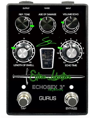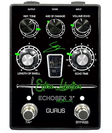 Pedales de delay: Consiste en la multiplicación y retraso modulado de un señal sonora. Una vez procesada la señal, se mezcla con la original. El resultado es el clásico eco sonoro.