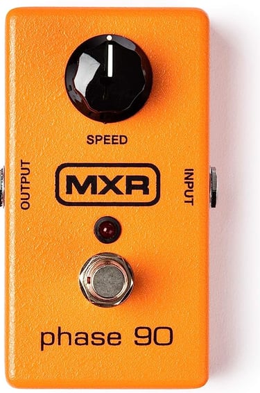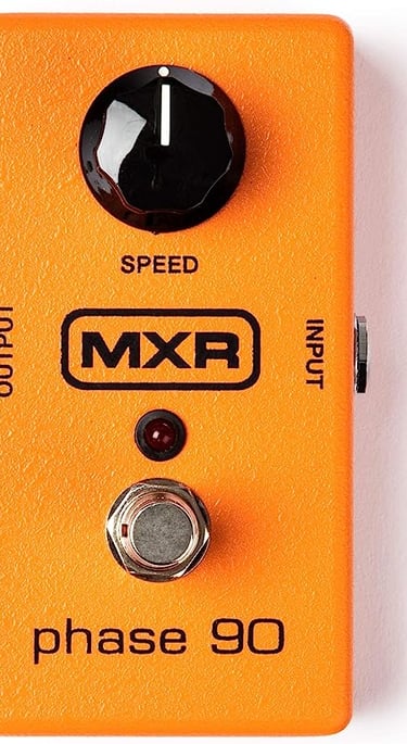 Pedales de phaser: Da un sonido "correoso" o un silbido que se sobrepone a la señal original. Si aceleras los silbidos, el efecto se escucha como si el amplificador diera vueltas alrededor de la habitación porque la señal duplicada entra y sale de la fase.