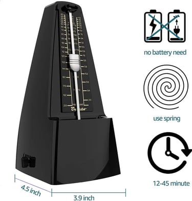 Características increíbles: clic audible y anillo de campana para mantener el ritmo mientras lees la hoja de música; mecanismo de cuerda produce ritmos métricos, no requiere batería; rango de tempo: 40-208 bpm; selección de ritmo: 0, 2, 3, 4, 6.